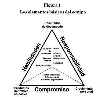 Para la elaboración del marco de referencia del artículo se ha seleccionado el de Katzembach-Smith. Este modelo considera como elementos del equipo los que se observan en la Figura 1. Los vértices del triángulo señalan lo que ofrecen los equipos: Resultados de desempeño, crecimiento personal y productos de trabajo colectivo. Los lados y el centro describen los elementos de la disciplina para hacer que eso ocurra. La mejor forma de comprender a los equipos es observándolos. Sus historias revelan sus logros, habilidades, emociones y compromiso, mejor que cualquier comentario abstracto. Los equipos reales están profundamente comprometidos con su propósito, metas y enfoque. En el más amplio sentido "el equipo" es siempre el resultado de buscar un verdadero reto en el desempeño.