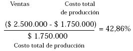 Así las utilidades objetivo son el 19.0476% de los costos totales o $ 400.000. Por tanto, si hablamos de 10.000 unidades anuales, el precio de venta será de $ 250 por unidad. Los costos totales de $ 210 por unidad y un margen unitario de $ 40, o sea del 19,05% del costo total.