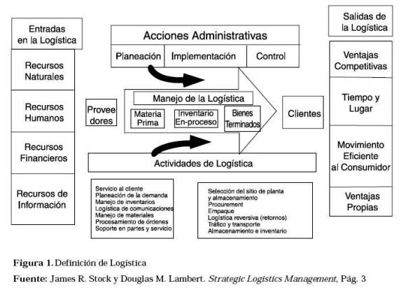 La Figura 1 ilustra algunas de las actividades incluidas en un sistema logístico, donde las entradas principales incluyen recursos naturales, humanos, financieros y de información, los encargados de la logística deben planear, implementar y controlar estas entradas en varias formas, incluyendo materias primas, productos en proceso y productos terminados. Las salidas del sistema logístico incluyen la ventaja competitiva que puede llegar a tener la organización como resultado de una orientación al mercado, una eficiencia operativa y un movimiento eficiente y efectivo de los productos terminados hacia los clientes.